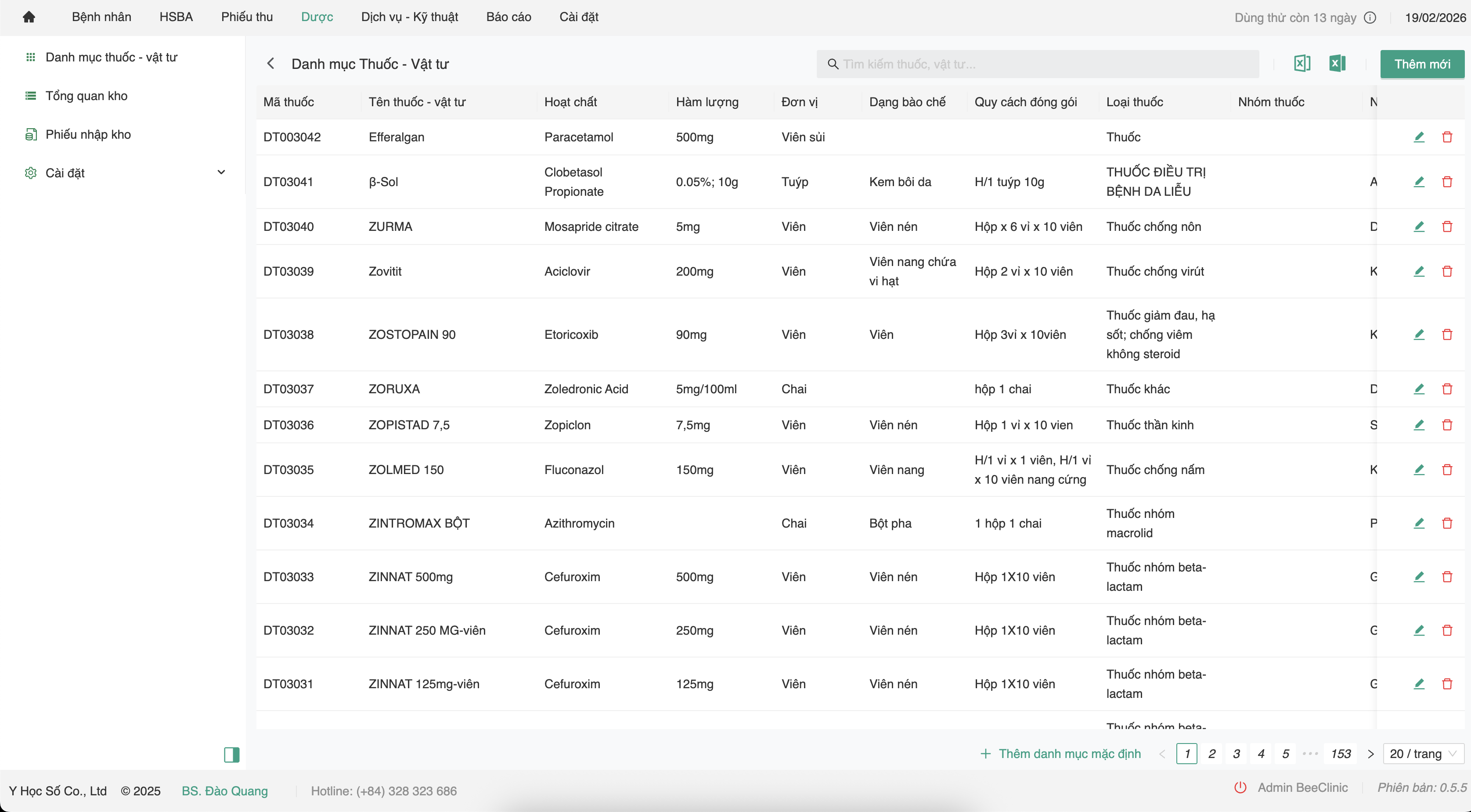 BeeClinic cung cấp tính năng quản lý kho nâng cao, cho phép theo dõi: