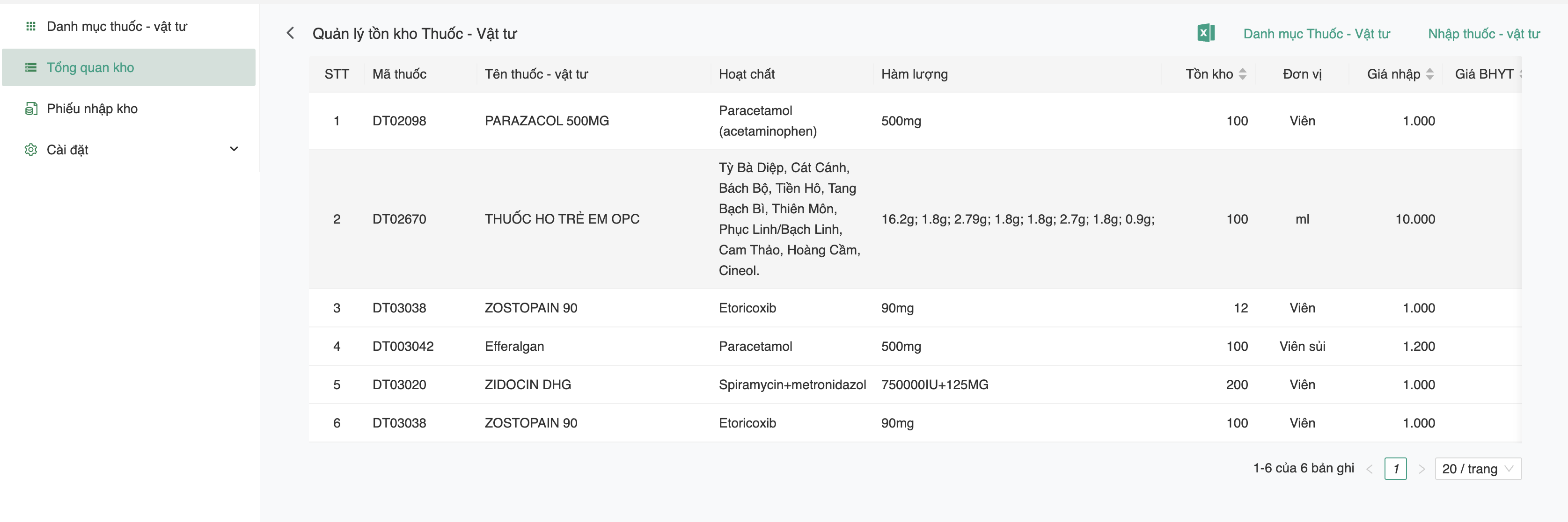 Để quản lý số lượng tồn kho, hạn dùng, bạn sẽ cần nhập thuốc vào kho thông qua phiếu nhập kho.
