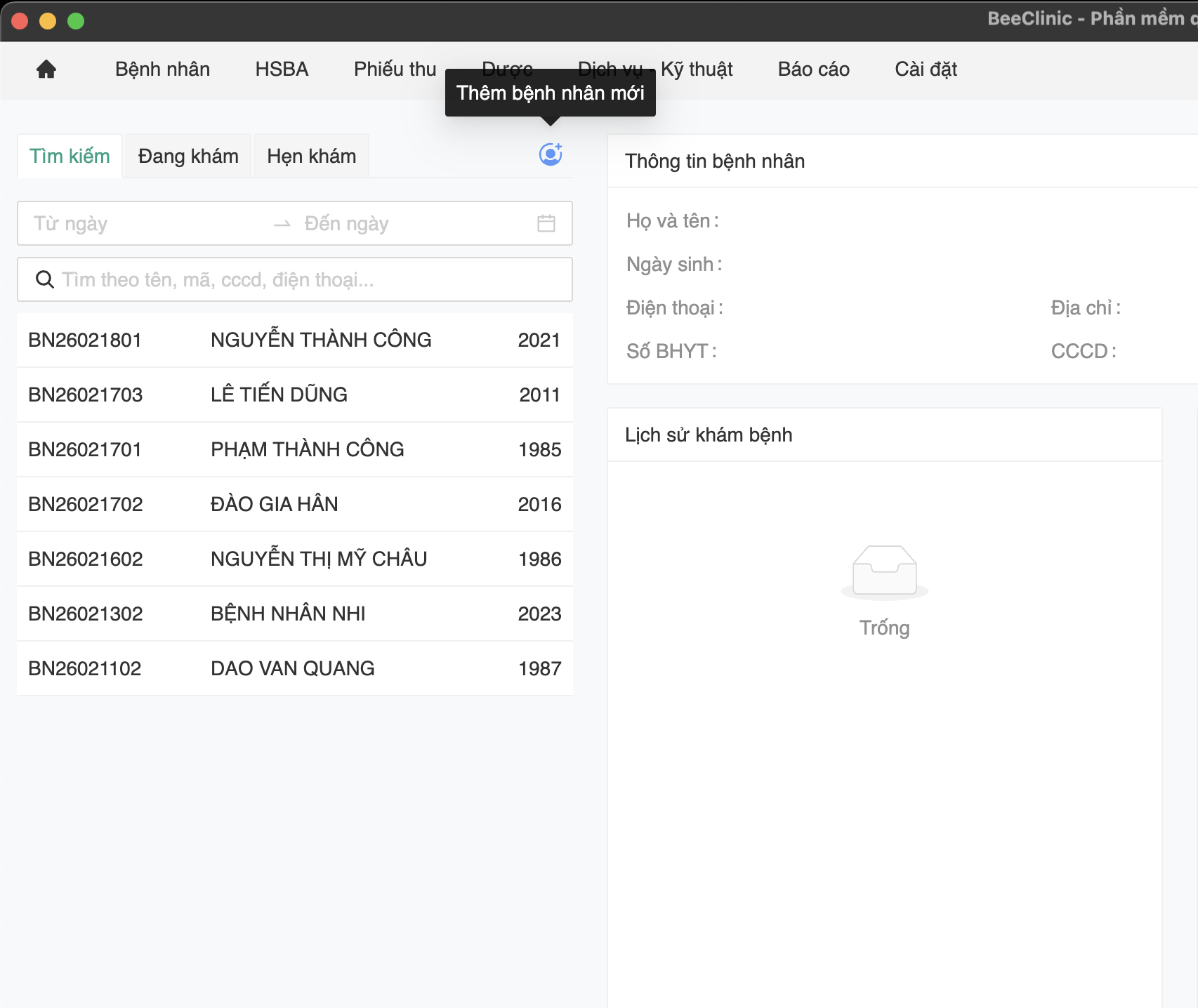 Sau khi đã hoàn tất cài đặt và thiết lập danh mục, bước tiếp theo trong quá trình triển khai BeeClinic là quản lý thông tin bệnh nhân.