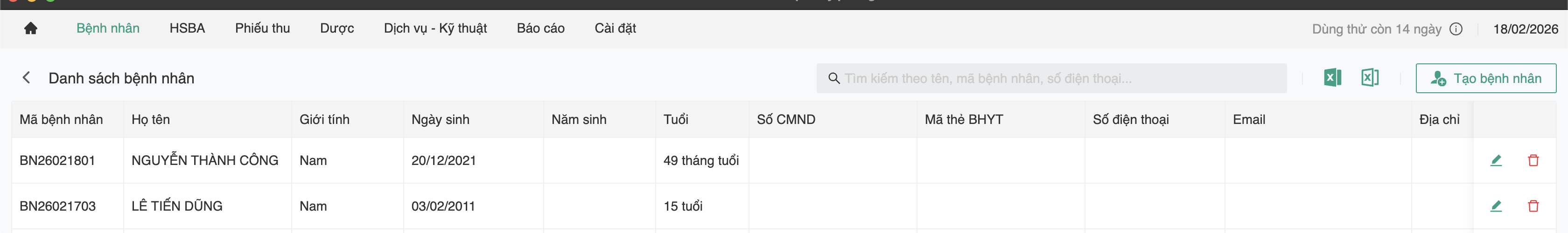 Vào mục Bệnh nhân → Thêm mới