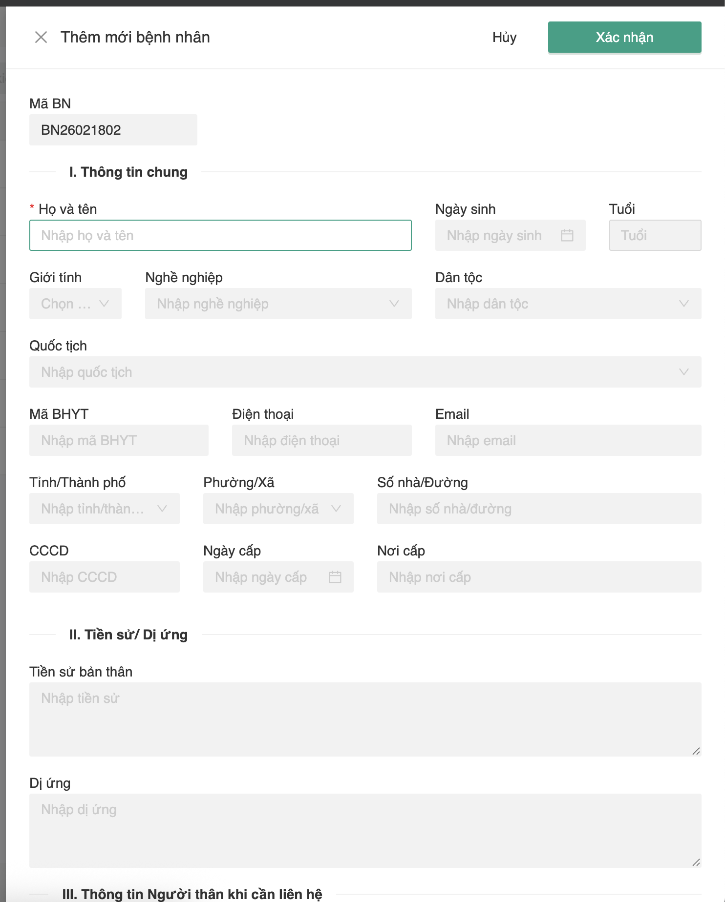 Modal thêm bệnh nhân sẽ hiển thị ra