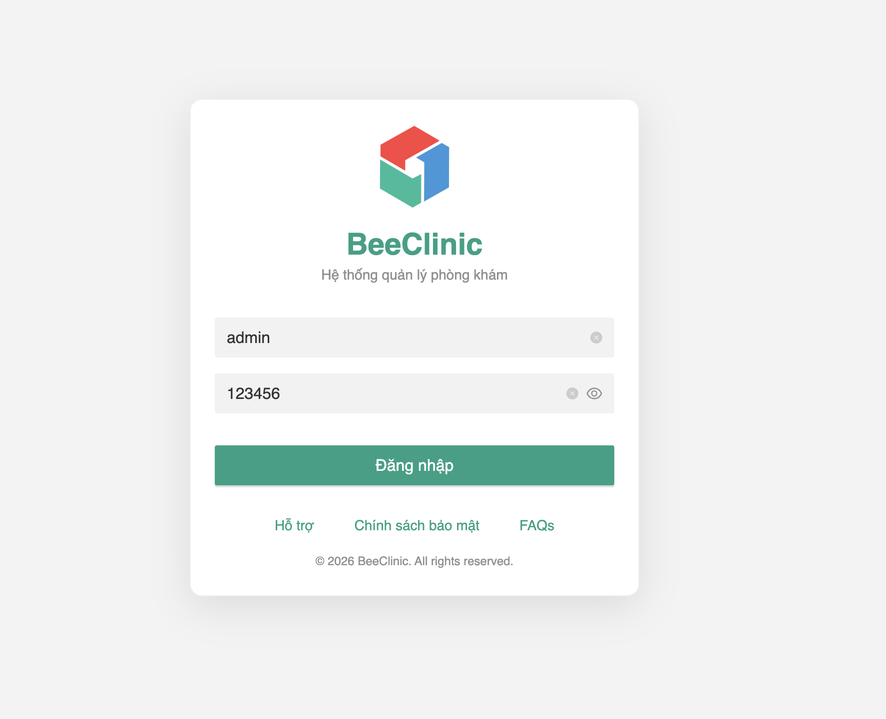 Chỉ với vài thao tác đơn giản, bạn đã có thể triển khai hệ thống quản lý phòng khám đầy đủ tính năng, dễ sử dụng và bảo mật cao.