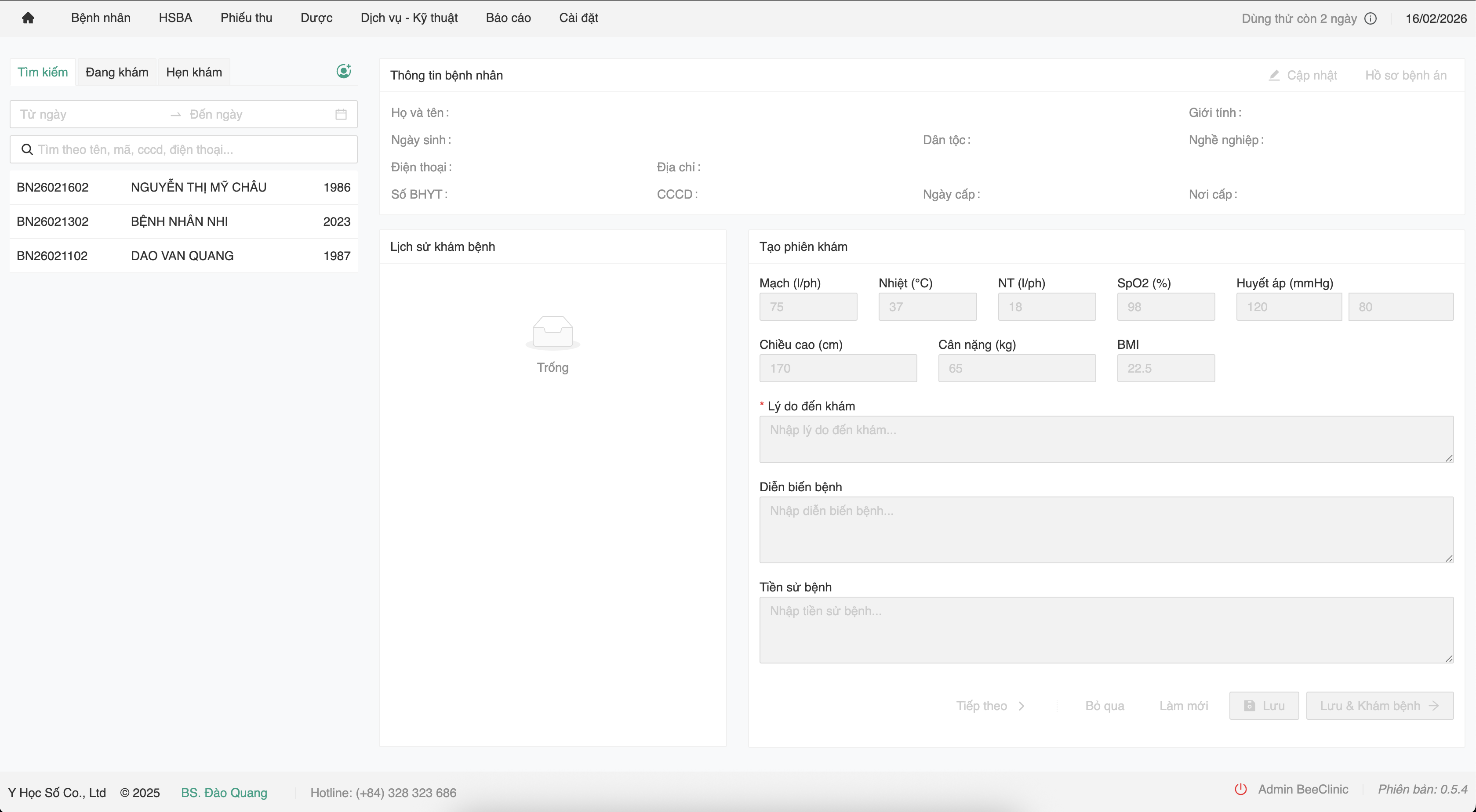 - Liên hệ bộ phận hỗ trợ BeeClinic qua hotline: 0328 323 686