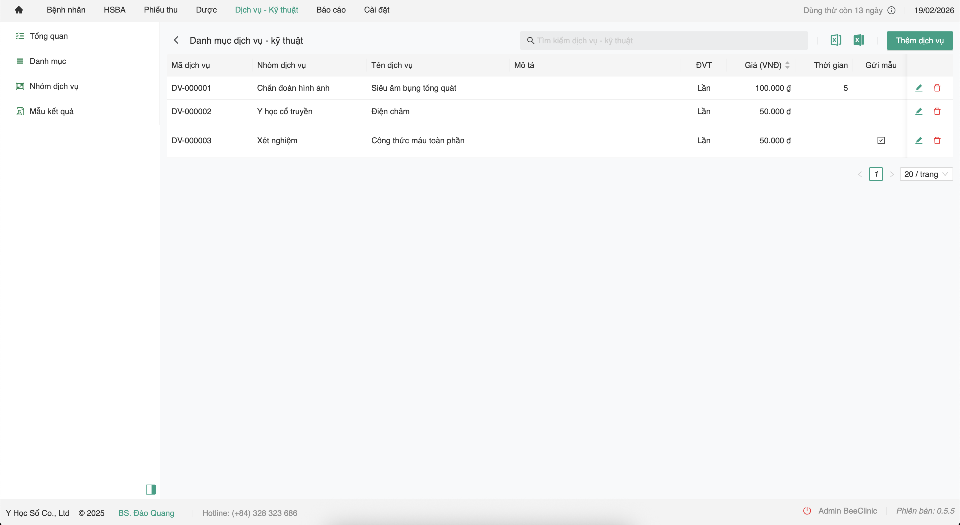 BeeClinic giúp phòng khám quản lý dịch vụ kỹ thuật một cách tập trung và minh bạch.