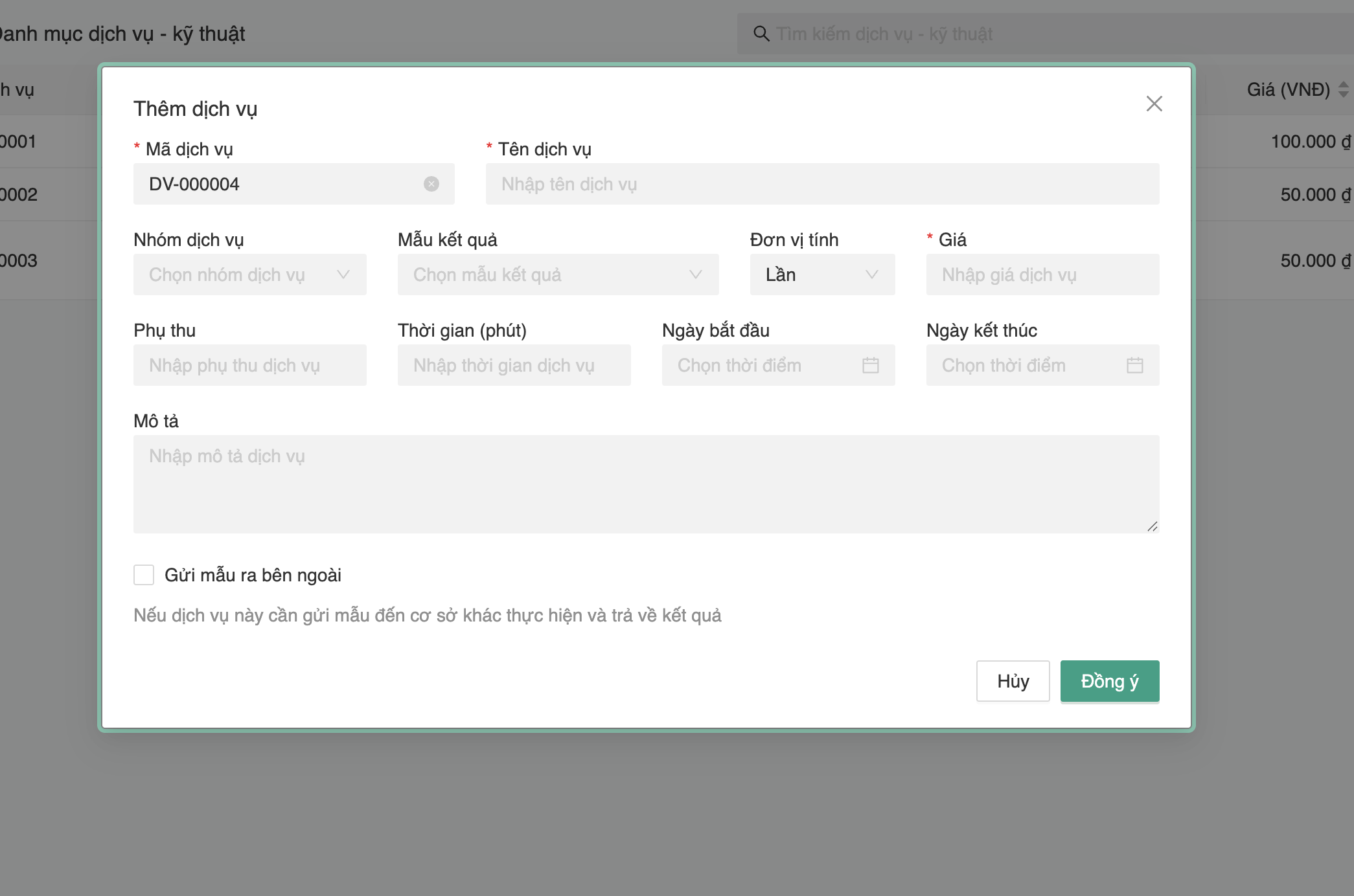 1. Khai báo danh mục dịch vụ kỹ thuật